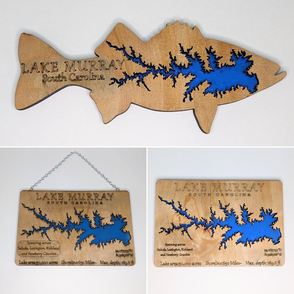 Wood Engraved Fish with Lake Murray