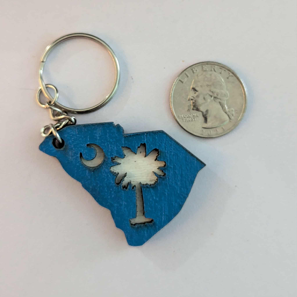 *State with blue tree keychain: 2.25"W x 1.75"H